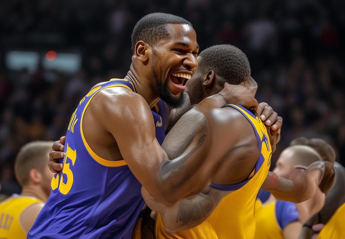 与队友的互动,杜兰特的每一次交流都显得格外真挚。他不仅是在场上并肩作战的战友,更是生活中的朋友。在比赛中,他总是第一个冲向队友,无论是成功的助攻还是关键的防守,他的拥抱总是充满力量,让人感受到那份不言而喻的兄弟情谊。